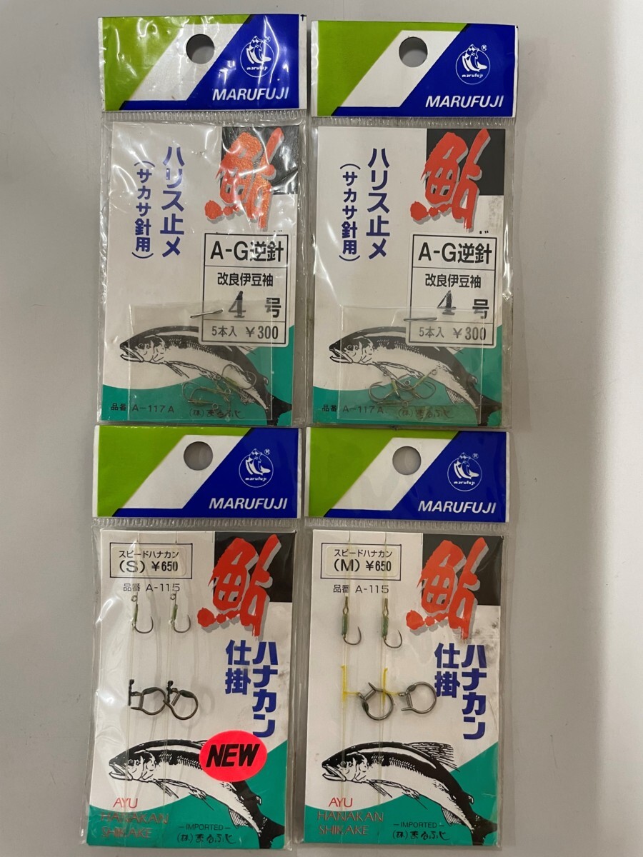 - [ 鮎] まるふじ ハリス止メ( サカサ針用) A-G逆針 改良伊豆袖 4号5本入/ ハナカン仕掛 スピードハナカン( S)( M) A-115 3種4点 送料無 a66