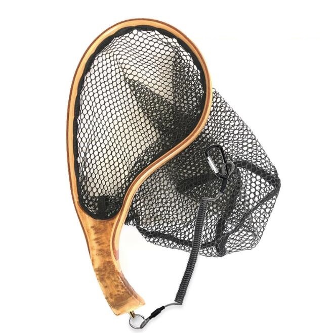 - 新入荷品質保証 渓流用 ランディングネット タモ網 玉網 クランク ハンドル ウッドラバーネット フライフィッシング 木製 持ち運び