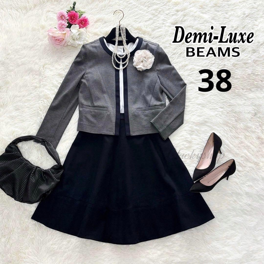> デミルクス ビームス スカート スーツ セットアップ 2点 美品 38 ジャージ ウール ママスーツ ノーカラー ひざ丈 BEAMS 七五三