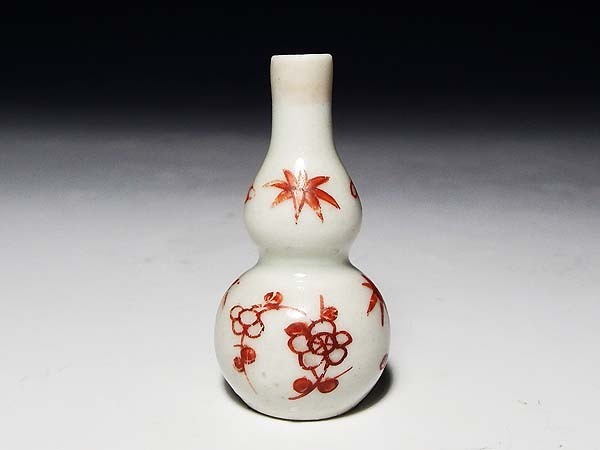 - 【桃】酒器ぐい呑み:元禄色絵花の図小さな小さな瓢徳利