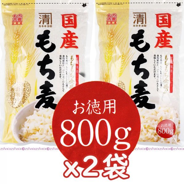 - もち麦 800g×2袋 1.6kg!【匿名配送 送料無料】カネキヨ印 西田精麦 国産100% お米に混ぜて栄養補給 食物繊維たっぷり プチプチもちもち
