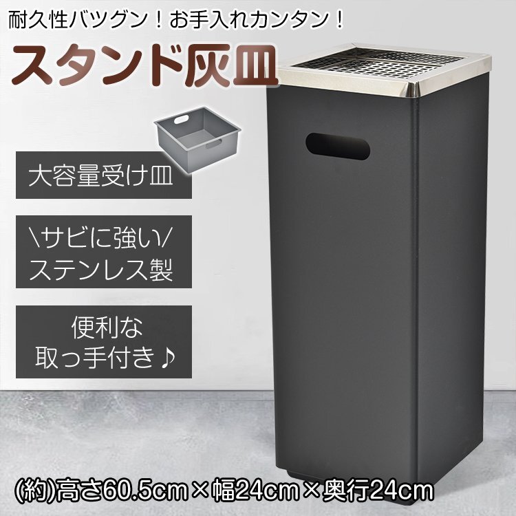 - 灰皿 スタンド 喫煙台 屋外 吸い殻入れ ステンレス 深め受け皿 ゴミ捨て防止 屋外用 業務用 おしゃれ 角型 蓋付き スタイリッシュ sg136