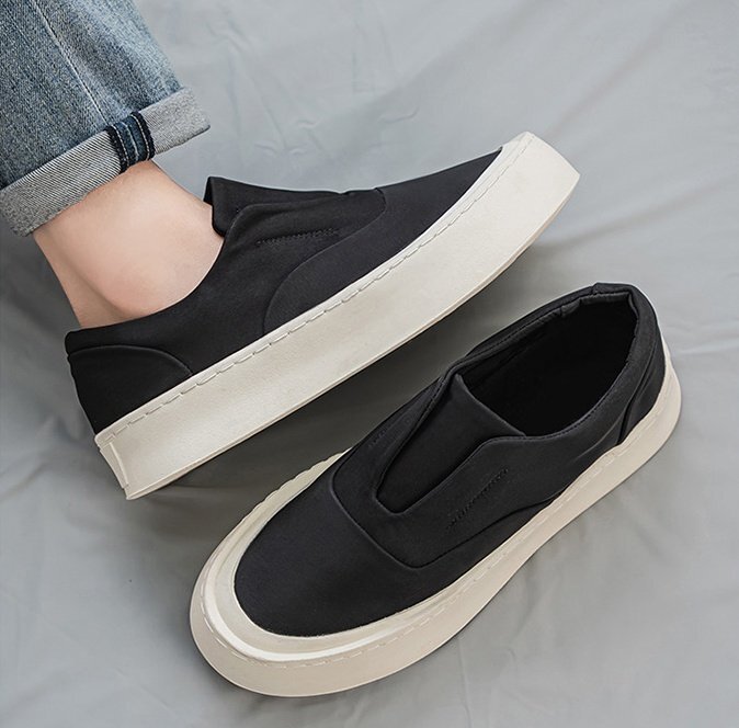 - スリッポン メンズ デッキシューズ スニーカー 靴 無地 キャンバススリッポン 足の甲が高い人 通勤 通学 カジュアル ブラック 26cm