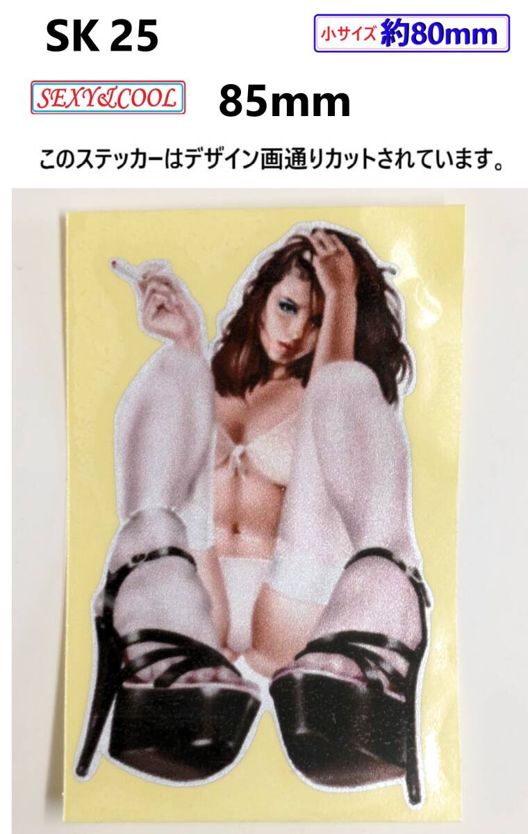 > 80mm級 SK25-03 キラキラ 美人 クール カッコいい セクシーガールステッカー セクシーステッカー レトロ ギター PC スマホ ボード