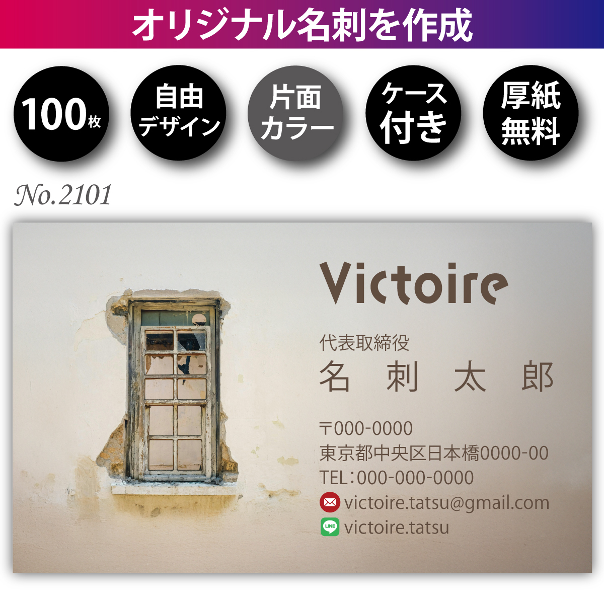 - 名刺 名刺作成 名刺印刷 100枚 片面 フルカラー 紙ケース付 No.2201
