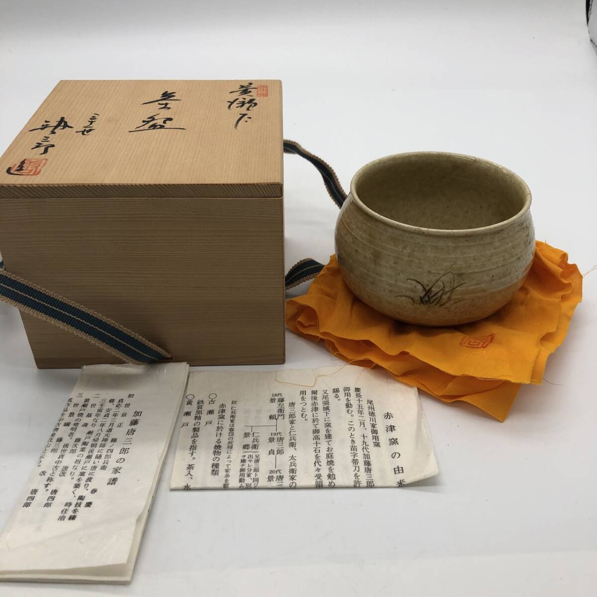 - tk2051-12 黄瀬戸 茶碗 三十一世 加藤唐三郎 茶道具 共箱