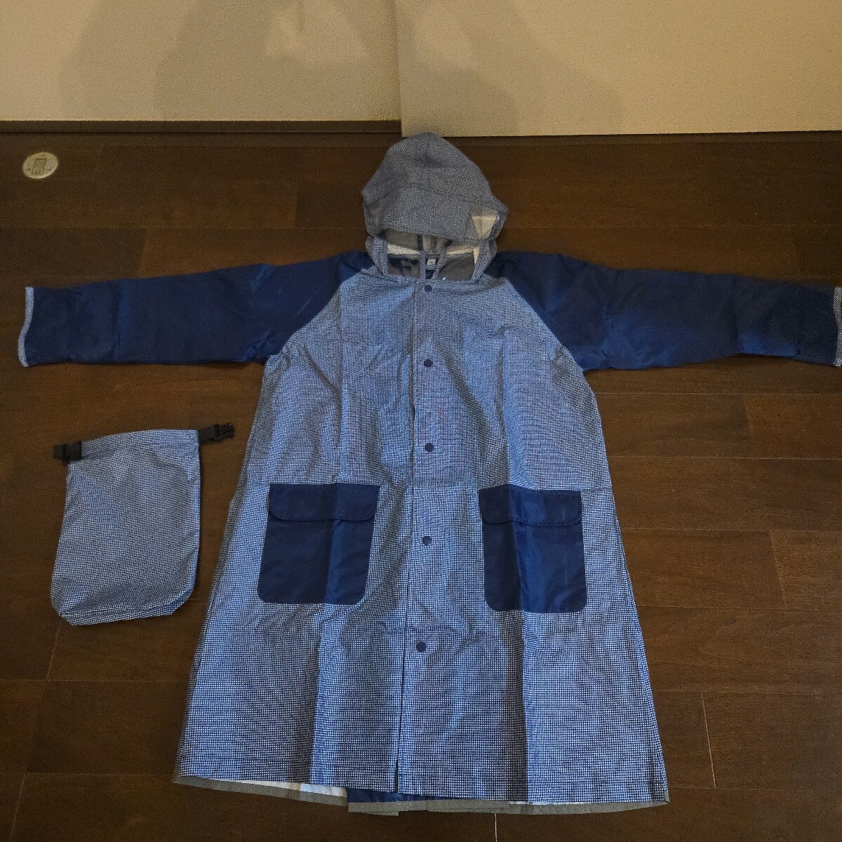 - レインコート ブルー チェック 130サイズ ランドセルOK カッパ 雨合羽 ネイビー 雨具 レインウェア 西松屋