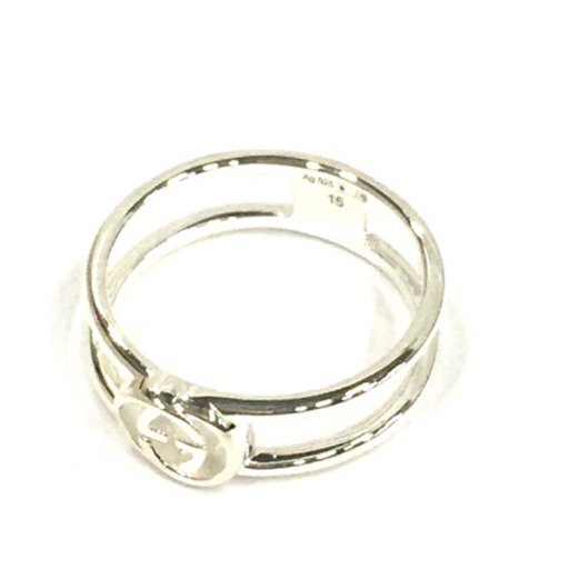 > 新品同様 グッチ 298036-J8400/8106/15 925 インターロッキングG スリムオープンバンドリング #15 14号 重量2.6g UE