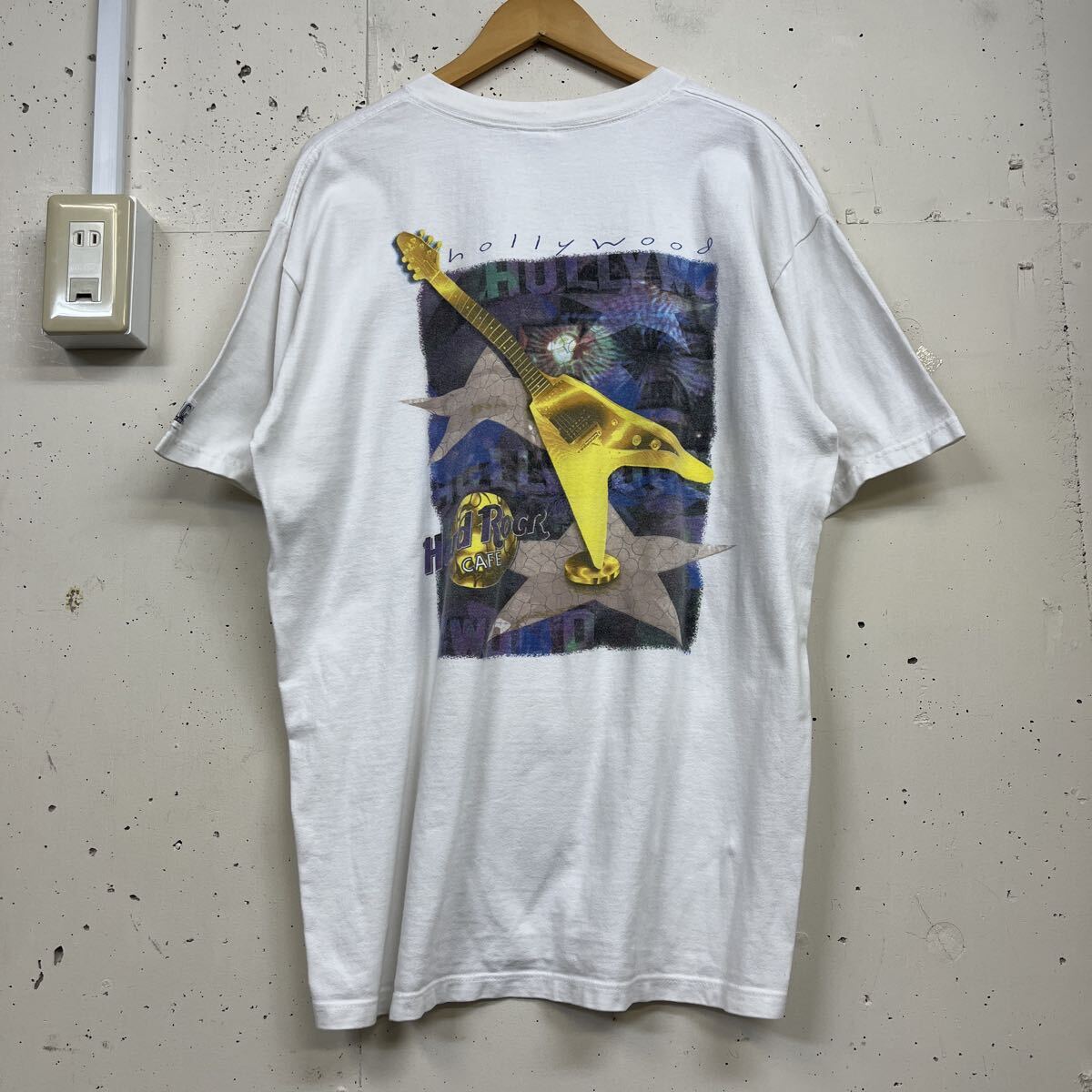 > Hard Rock CAFE ハードロックカフェ Flyng V ギター 両面プリント 半袖 Tee Tシャツ 白 ホワイト USA製 サイズL