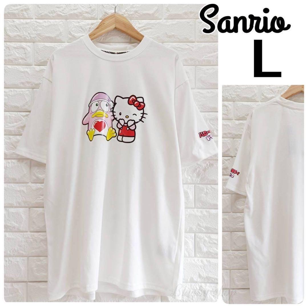 > Sanrio サンリオ キャラクター × ドンペン ドンコ ハロー キティ Tシャツ ホワイト L キティちゃん コラボレーション ステッカー付き