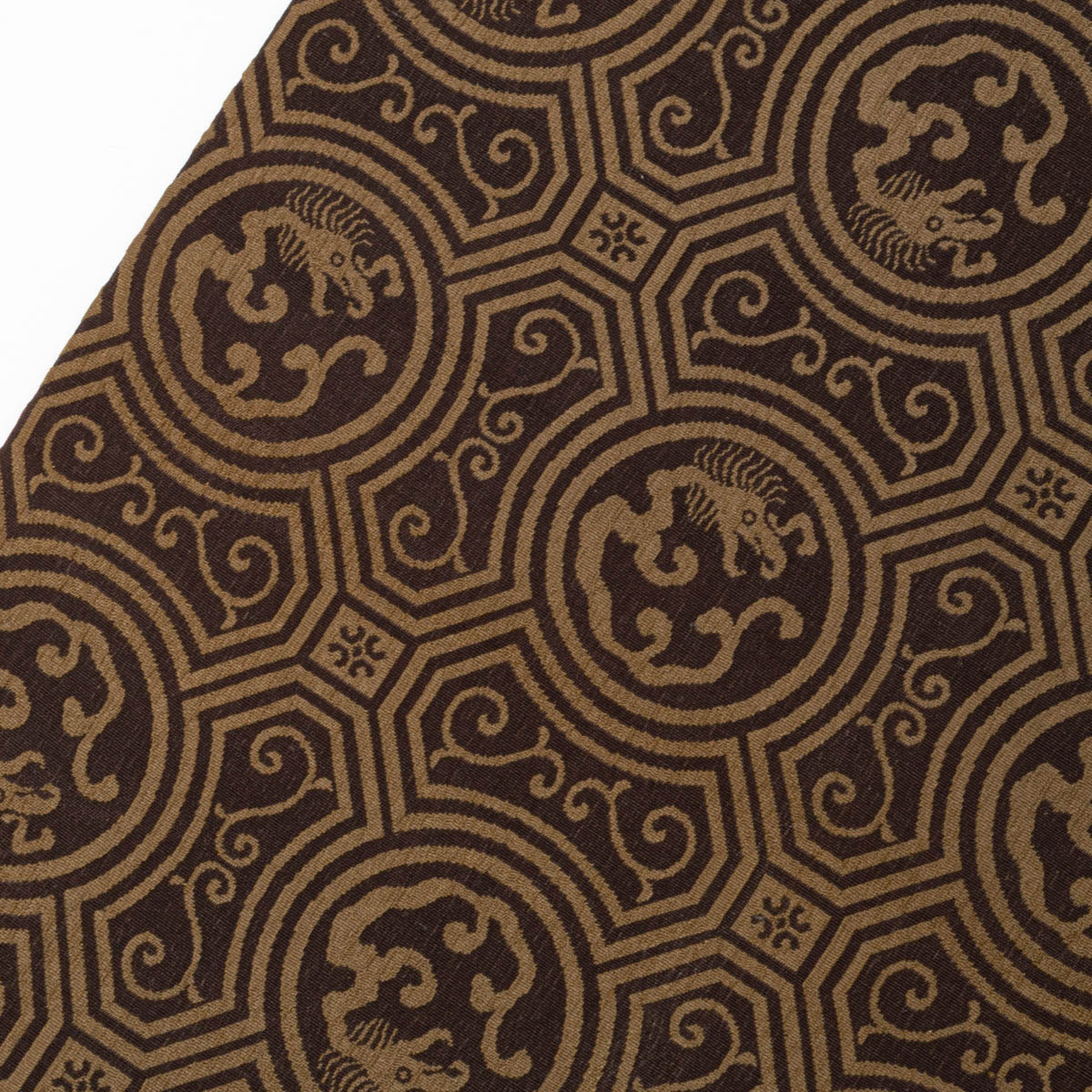 > 【アンティーク】袋帯 龍の図 蜀江文 唐草 焦茶 昼夜仕立て 市松 鱗文 正絹 ヴィンテージ品