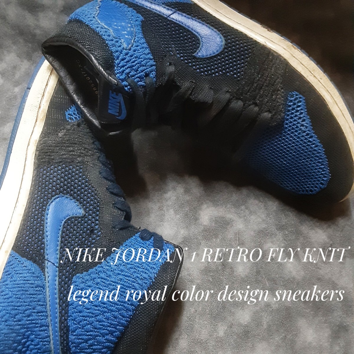 - 最値!85年復刻!レジェンドロイヤルカラー!ナイキ エア ジョーダン 1 レトロ フライニット高級スニーカー!ブルー×ブラック!青黒白 希少25cm