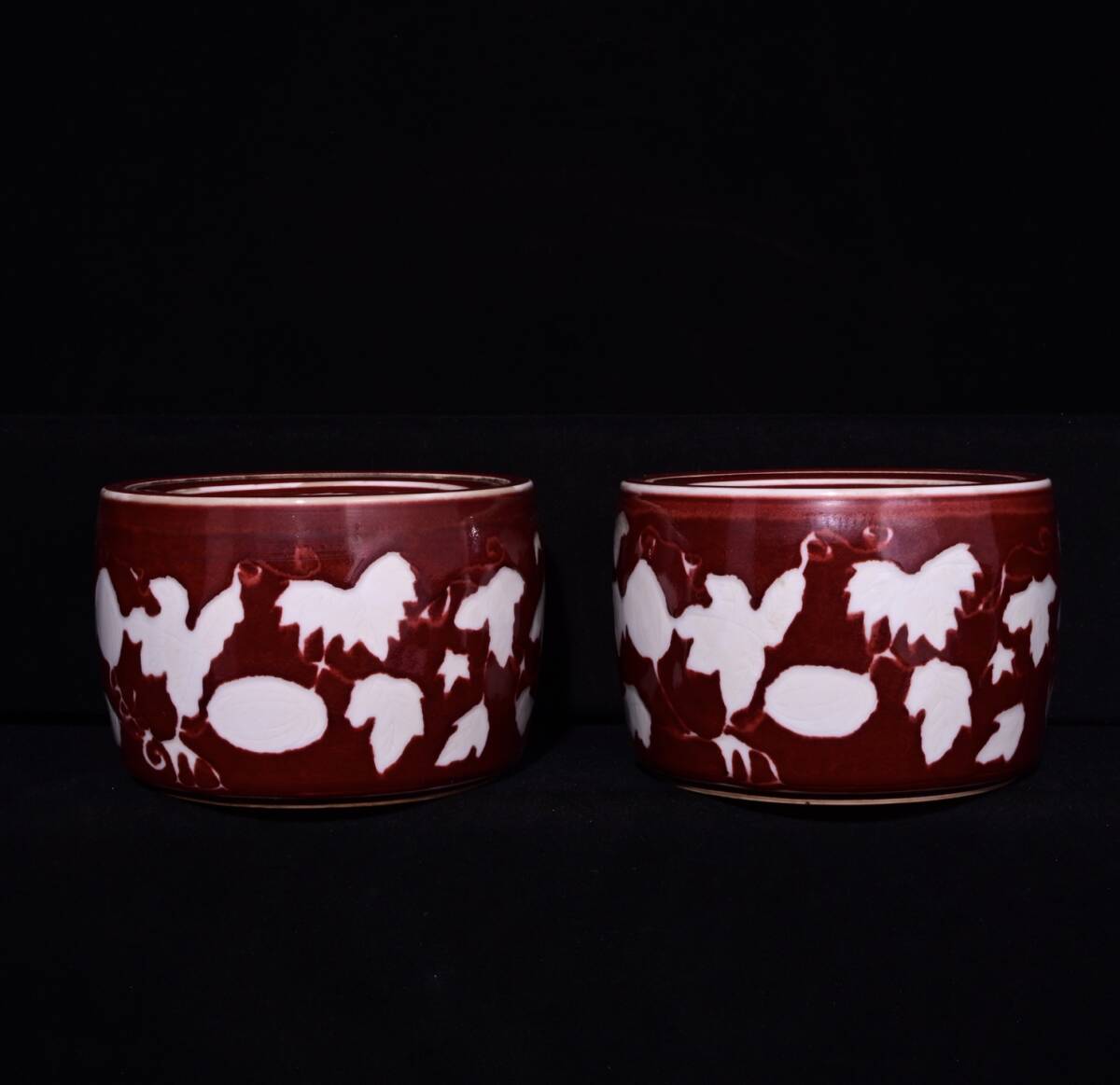 - A_YF0547【惠】人間国宝 中国骨董 陶芸 磁器【明宣徳制祭紅釉余白西瓜紋キリギリスの壺を作ります】工芸品 施釉陶 青花磁 陶芸 置物 收藏品