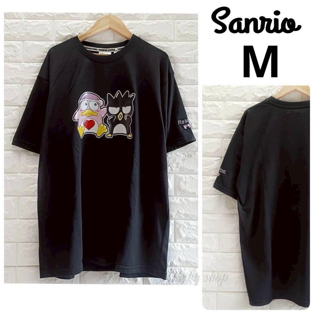 > Sanrio サンリオ キャラクター × ドンペン ドンコ バッド バツ丸 Tシャツ ブラック M コラボレーション ステッカー付き