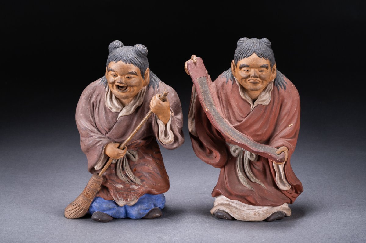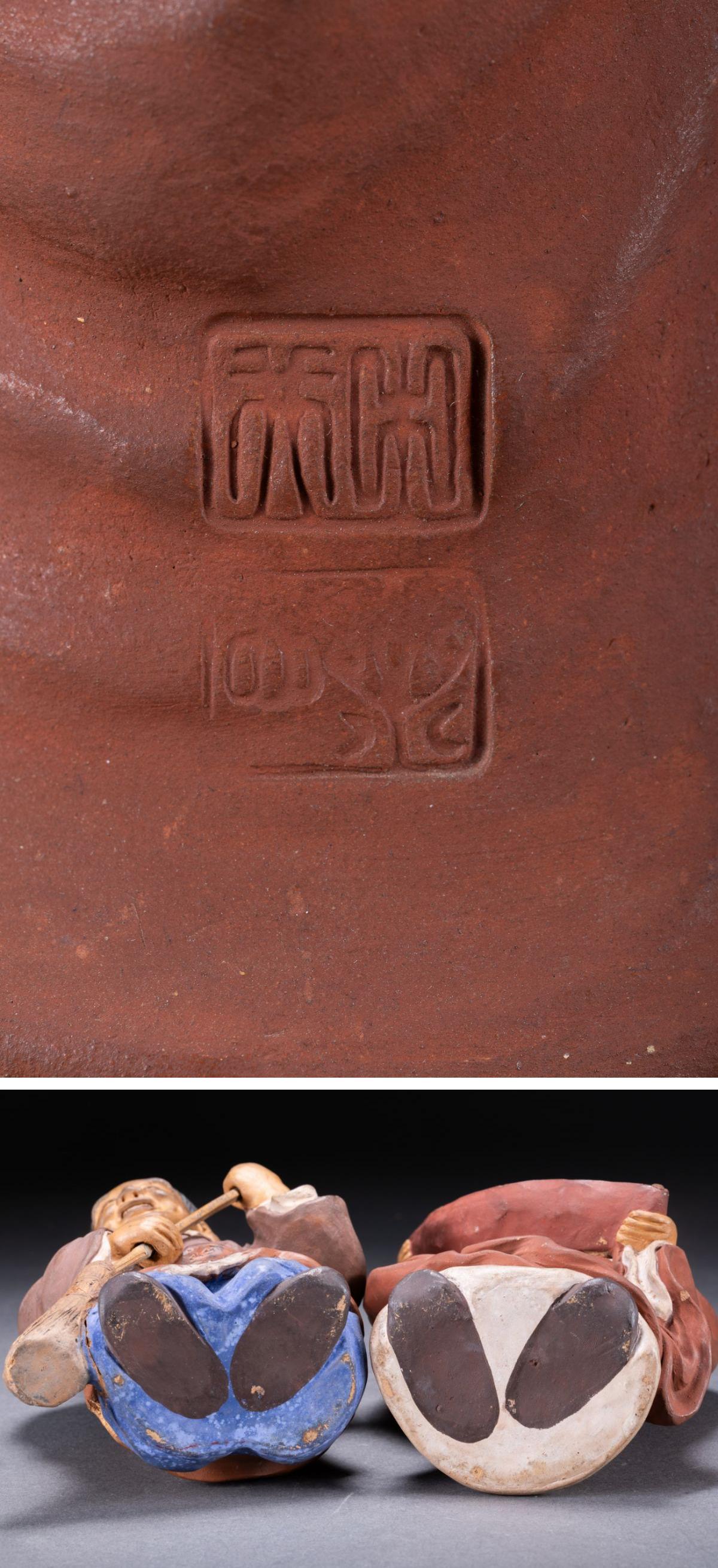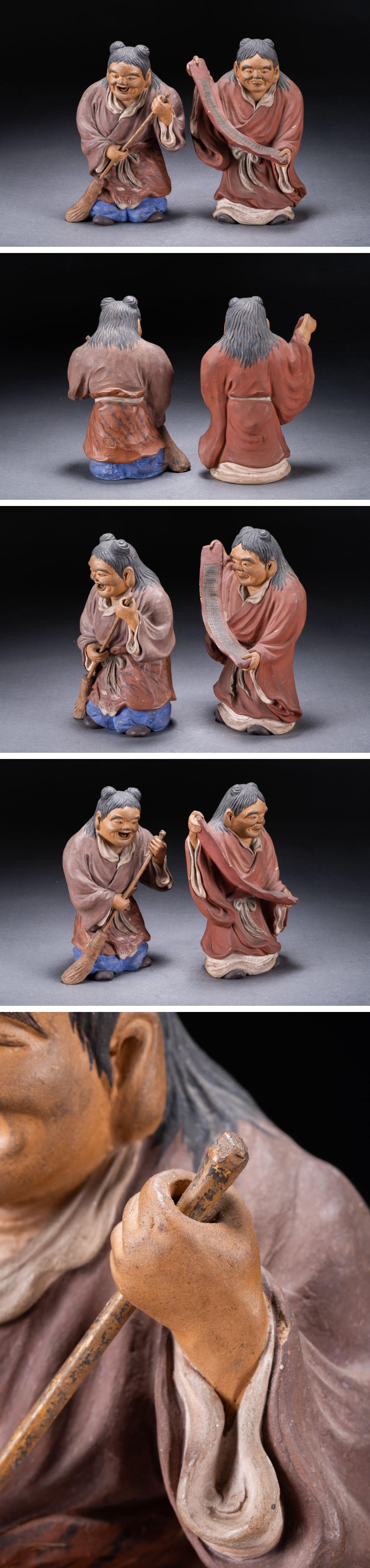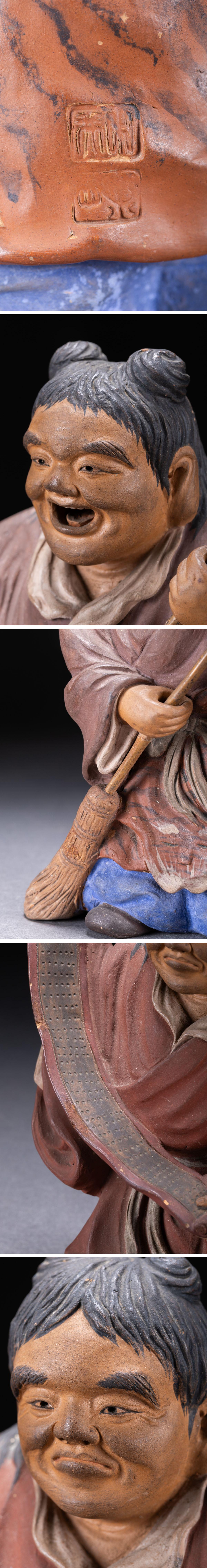 - 【華】時代舊藏 清時代 中国伝来 在銘 紫砂 朱泥 和合二仙置物 当時物保証 時代物 古美術 骨董品A25070073-ER