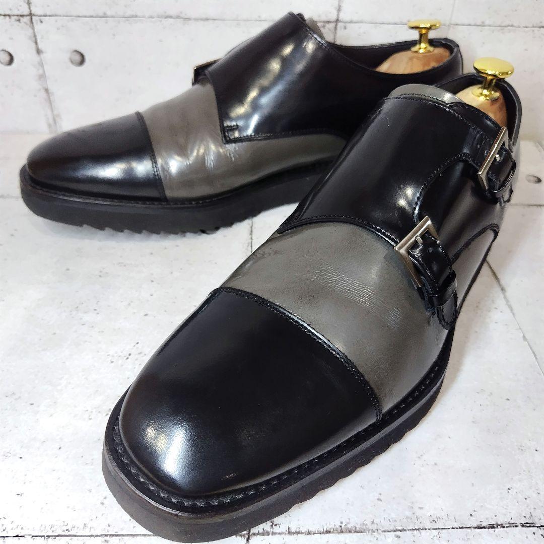 - リーガル メンズ 革靴 REGAL ダブルモンクストラップ 黒グレー バイカラー ビジネスシューズ 冠婚葬祭 通勤通学 オフィス 仕事 ビジネス