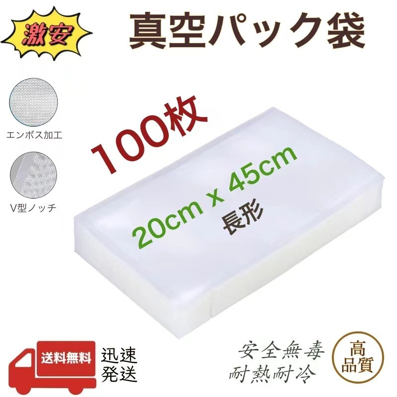 - 真空パック袋 20x45cm エンボス加工 真空パック機専用袋 20-45 袋 ポリ袋 90μ 厚手 脱気 密封 真空保存 200×450㎜ 100枚 業務用 家庭用