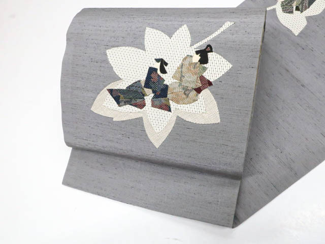 > 《京都一輝堂》リサイクル着物 袋帯 太鼓柄 人物文 正絹 25b07-1166
