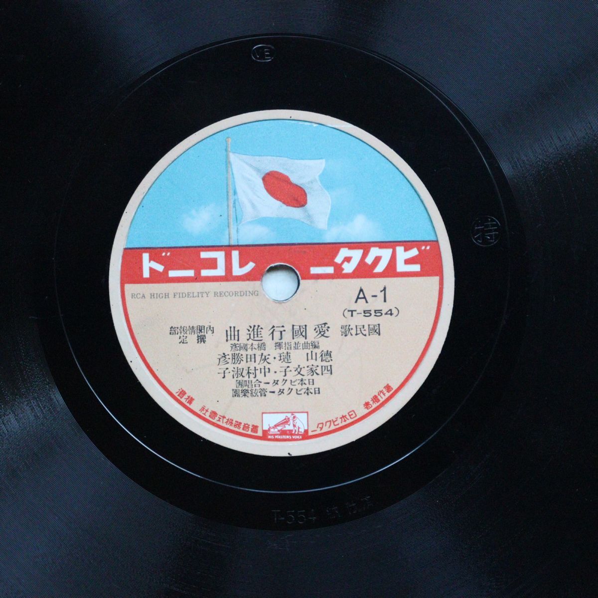 - S216/SP盤/カード付/国民歌「愛国行進曲」 徳山璉 灰田勝彦 四家文子 中村淑子 日本ビクター合唱団/指揮 山口常光「愛国行進曲」/A-1