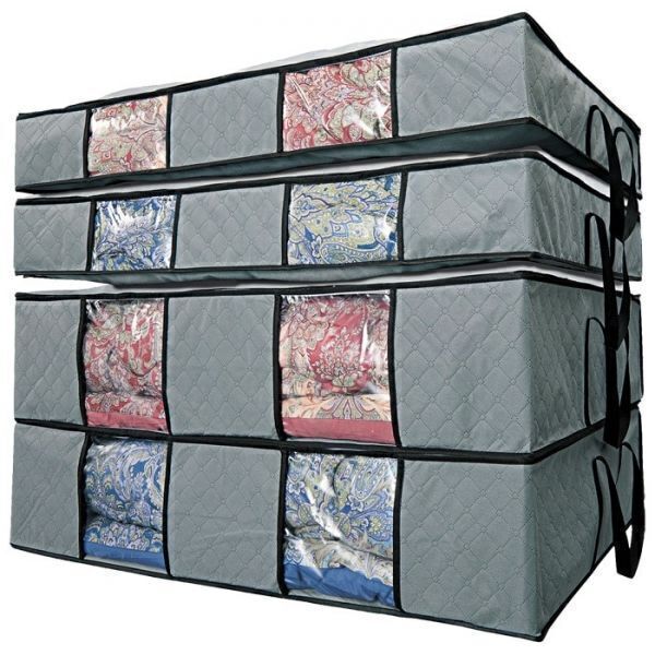 > ZB577-2 ③竹炭衣類整理袋 収納ケース 消臭 掛・敷布団用 羽毛布団用 各2点 合計4点セット 定価6980円 不織布 押し入れ クローゼット