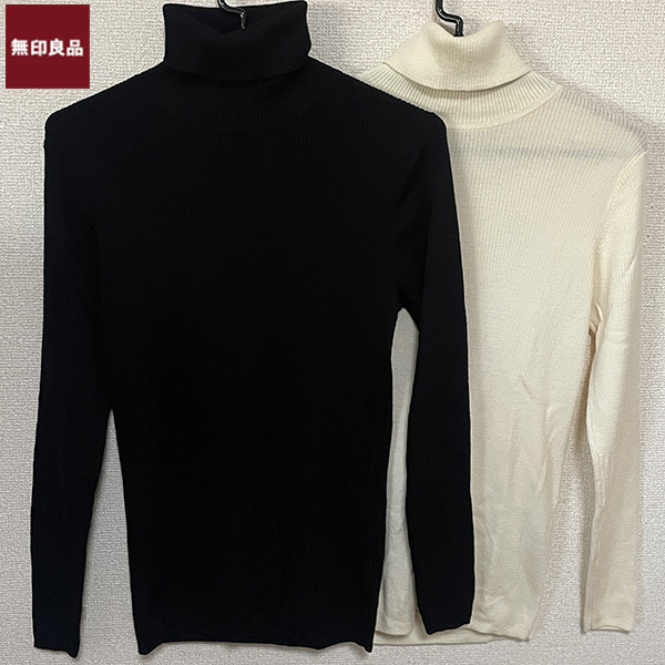 - 送料無料 無印良品 タートルネック ウール セーター 2枚セット リブ ニット M ブラック オフホワイト ミリタリー Old Vintage Rare 古着