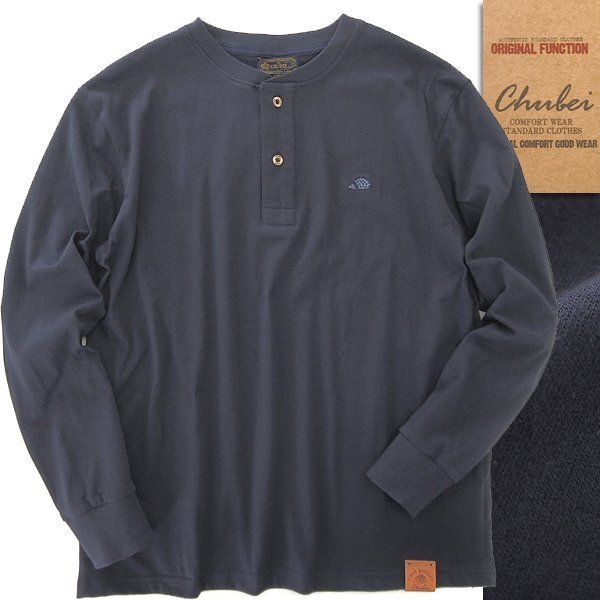 - 新品 チュウベイ ワンポイント刺繍 ヘンリーネック Tシャツ LL 紺 【CH1443203_79_LL】 CHUBEI メンズ カットソー ハリネズミ 長袖