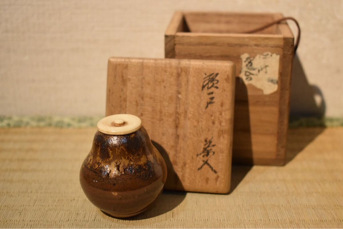 > 【GE】M560【コレクター所蔵品】時代 瀬戸茶入 箱書付/日本美術 瀬戸焼 茶道具 骨董品 時代品 美術品 古美術品 gy