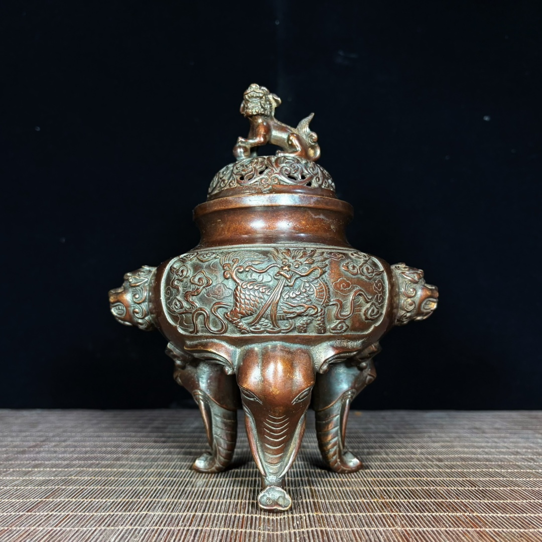 - 館蔵 古銅彫 麒麟回首 吸水納財 香炉 古董品 時代物 賞物 貴重 稀少珍品 中国古美術 古美味 蔵出