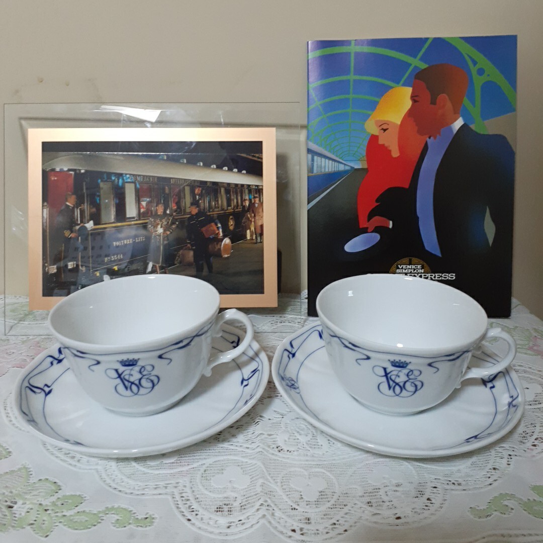 - 【リチャードジノリ/Richard Ginori】「VSOE オリエントエクスプレス」カップ&ソーサー2客&(2L判ガラス額装)ポストカード&レターセット