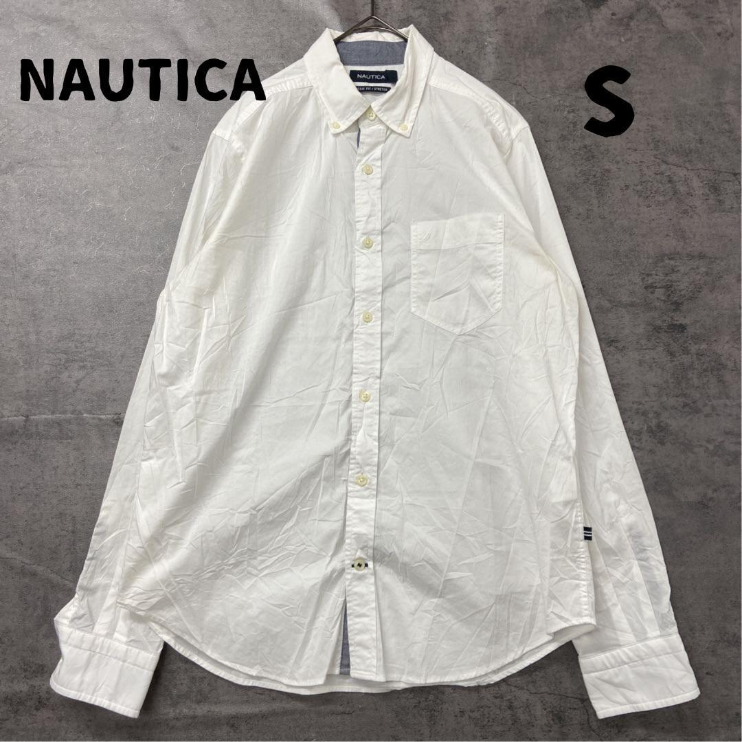 - ノーティカ USA古着 定番 白 長袖シャツ 無地 ボタンダウン【6095】