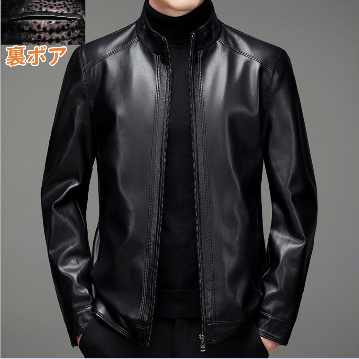 - 裏フリーフ スェイクレザージャケット 裏ボア PUレザージャケット コート アウター メンズ*新品 冬服紳士服【2952】黒 L