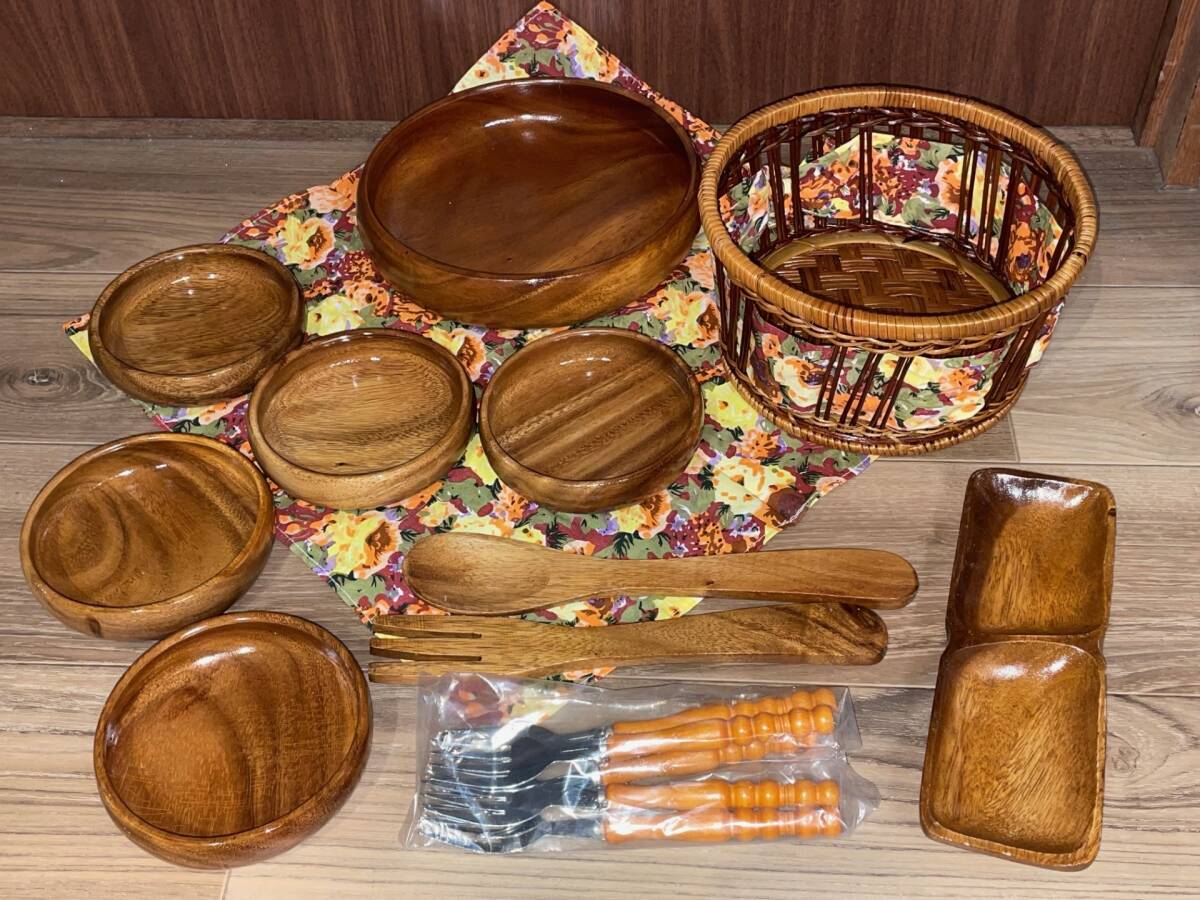 > 【新品 未使用】 WOOD COLLECTION サラダボウルセット サラダ ボウル 食器 木製 天然木 食器 皿 お椀 キャンプ アウトドア 洋食器