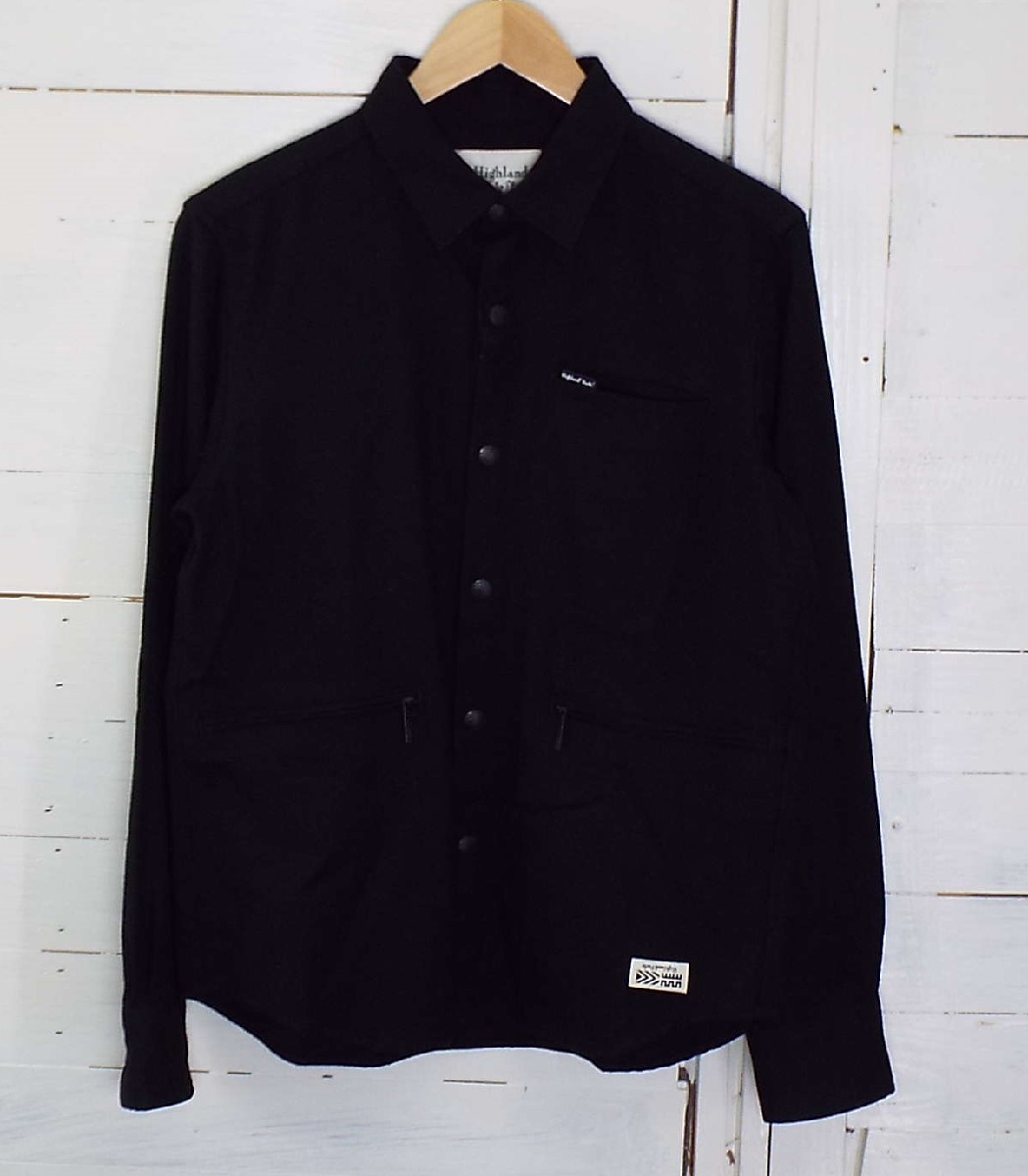 > T1894〇Highland Park(ハイランドパーク)ウールシャツ MIZUNO ミズノ ブラック Lサイズ