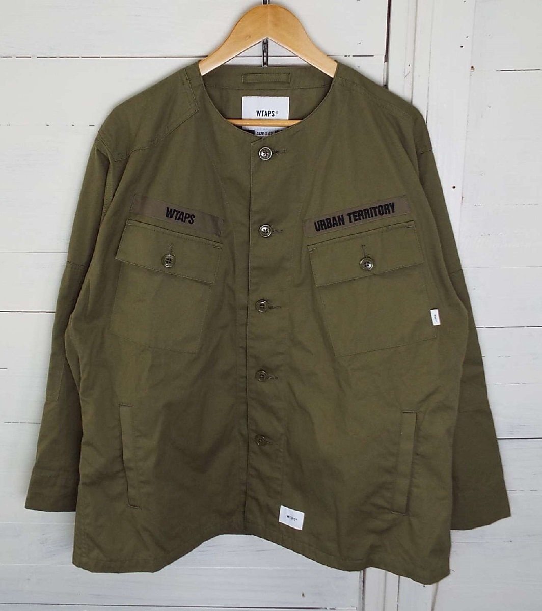 - T3395〇WTAPS(ダブルタップス)20AW ノーカラー スカウトシャツ 長袖 202WVDT-SHM02 オリーブ サイズX02