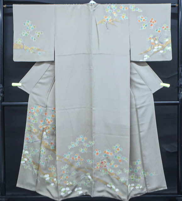 - 《京都一輝堂》【着物】訪問着 紅葉文 金彩 身丈約153cm 裄丈約63cm 4Z-1918