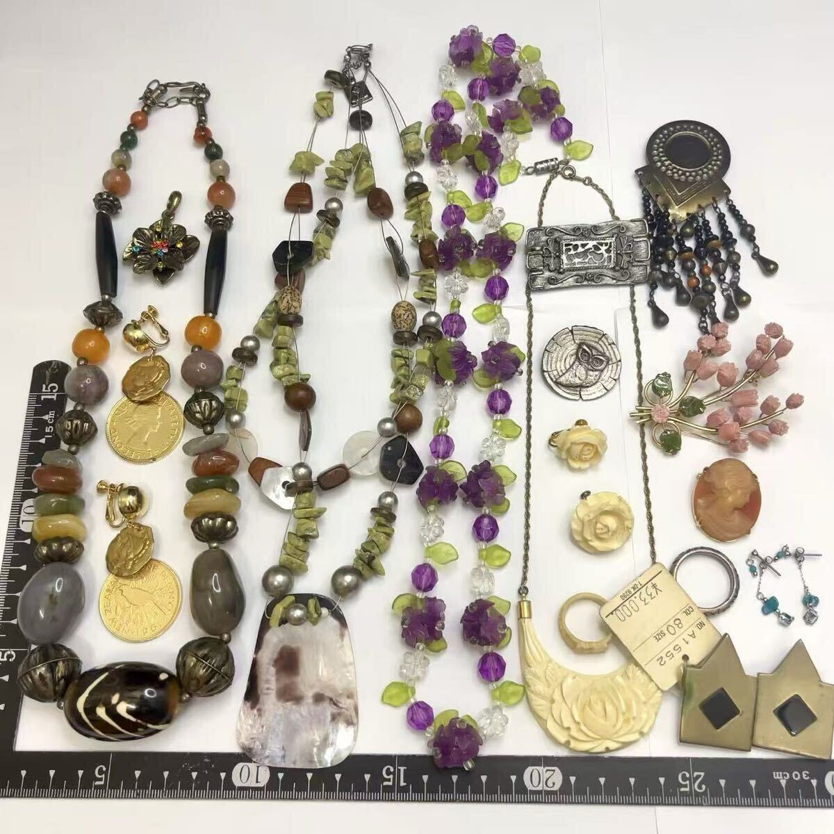 - 1円 ビンテージ アンティーク アクセサリーまとめ 大量 ネックレス イヤリング ブローチ 指輪 天然材 天然石 catto bianco firenzn/925等