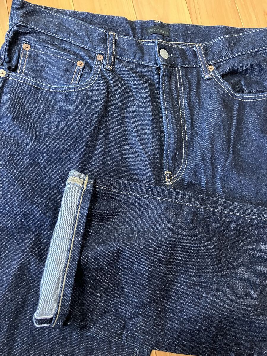 > 濃紺 美品 UNIQLO ユニクロ W34 カイハラ セルビッジ 赤耳 ストレート ジーンズ デニム