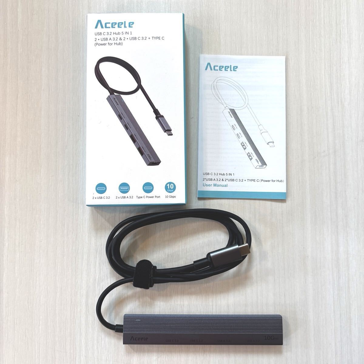 - Aceele USBハブ10Gbps 4ポート拡張USB 3.2 Gen 2 ハブ 120cmケーブル付き/2xUSB-Aポートと 2xUSB-C ポート/ Type-c電源ポートUSB A USB 3.2