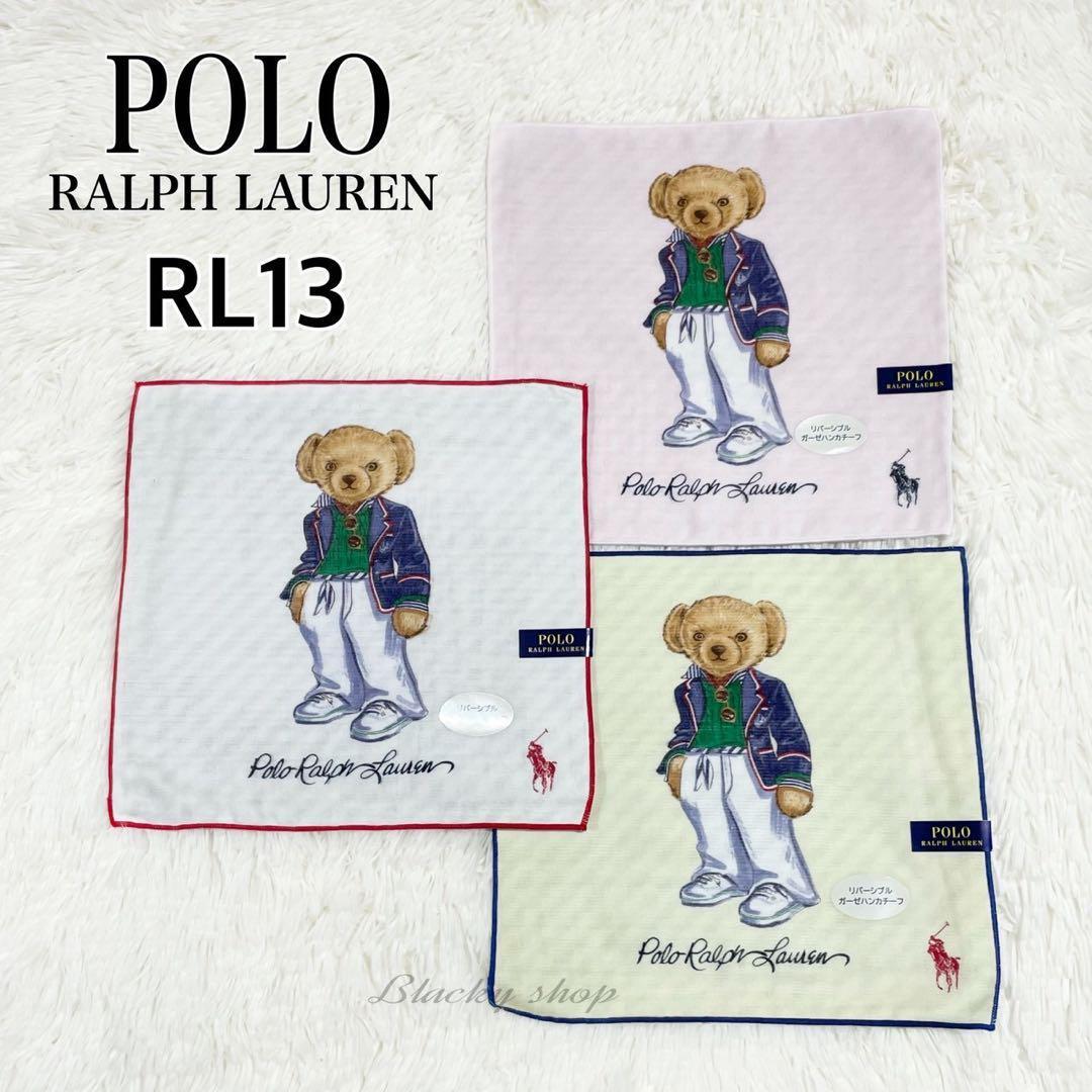 - 3枚セット ポロ ラルフローレン ポロベア ガーゼ ハンカチ リバーシブル 新品 ストライプ RL13 日本製 POLO RALPH LAUREN ポニー ロゴ
