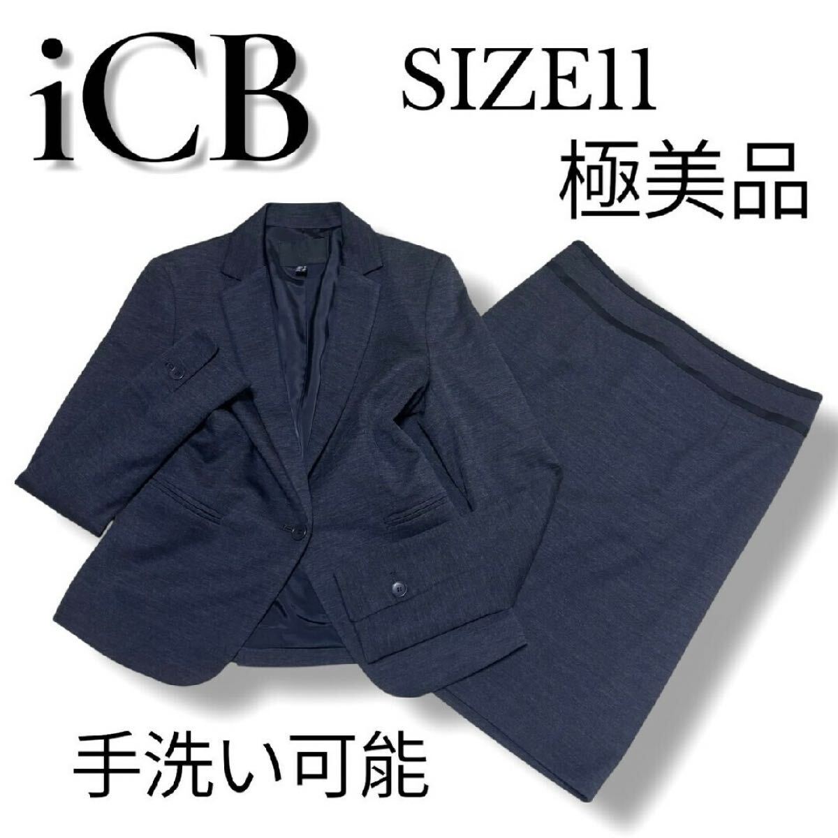 > 極美品 サイズ11 アイシービー スカートスーツ セットアップ 手洗い可能 icb L 40号 テーラードジャケット 1B 膝丈スカート フォーマル