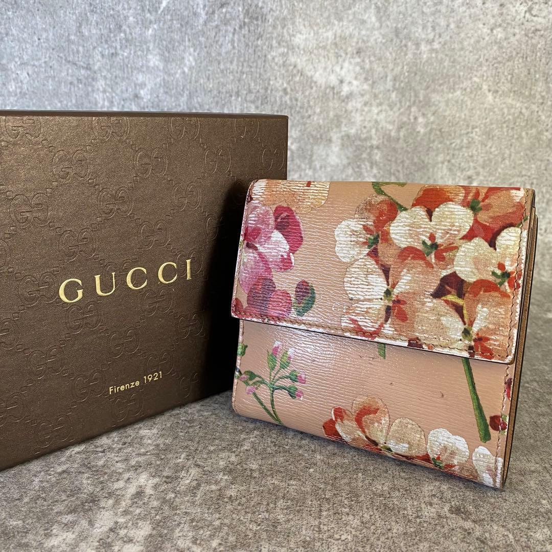 - 希少 レア GUCCI グッチ 二つ折り財布 ブルームス コンパクトウォレット 花柄 フラワー