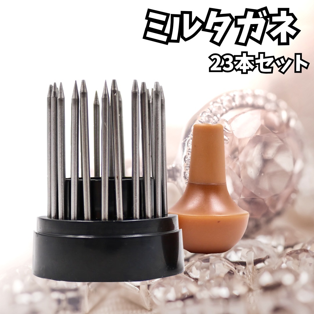 - ミル タガネ 23本 セット アクセサリー 工具 石留め 彫金 ハンドメイド ジュエリー 指輪 縁 宝石 魚子 便利 お手軽 セット