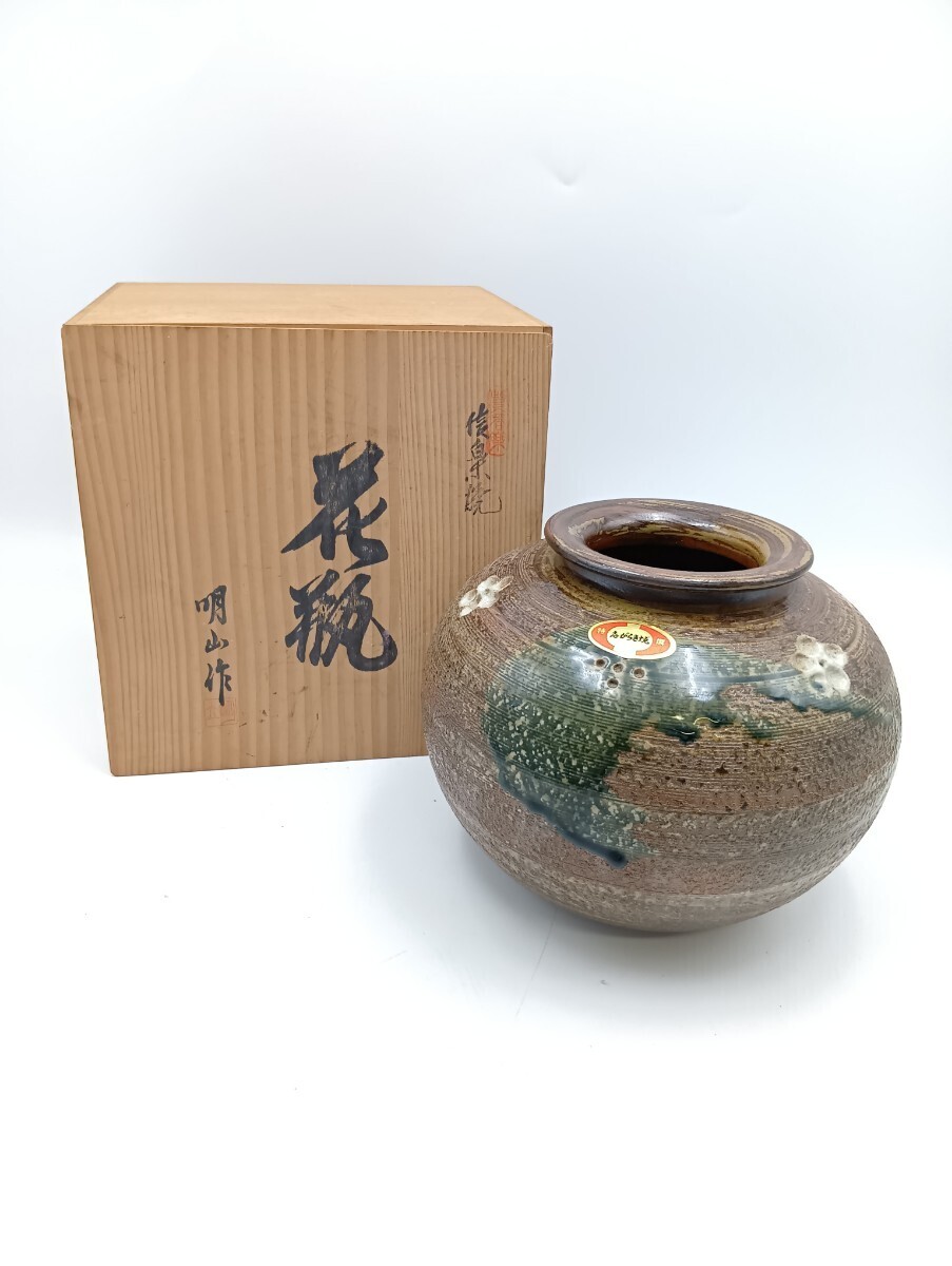 - 【OK彦】信楽焼 明山窯 花器 花瓶 壺 花 共箱 特選 志がらき焼 1円スタート