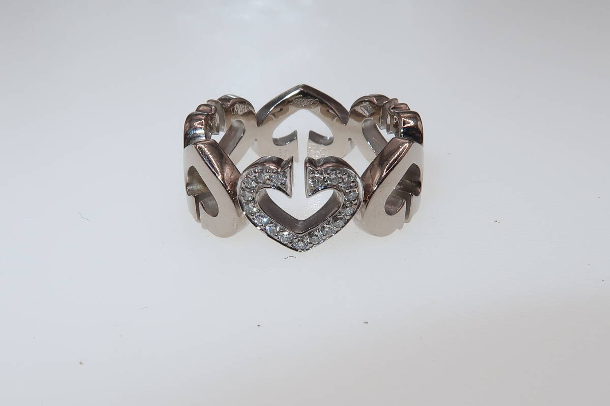 - Cartier カルティエ 750/K18WG ダイヤモンド ハート リング 9号 ♯49