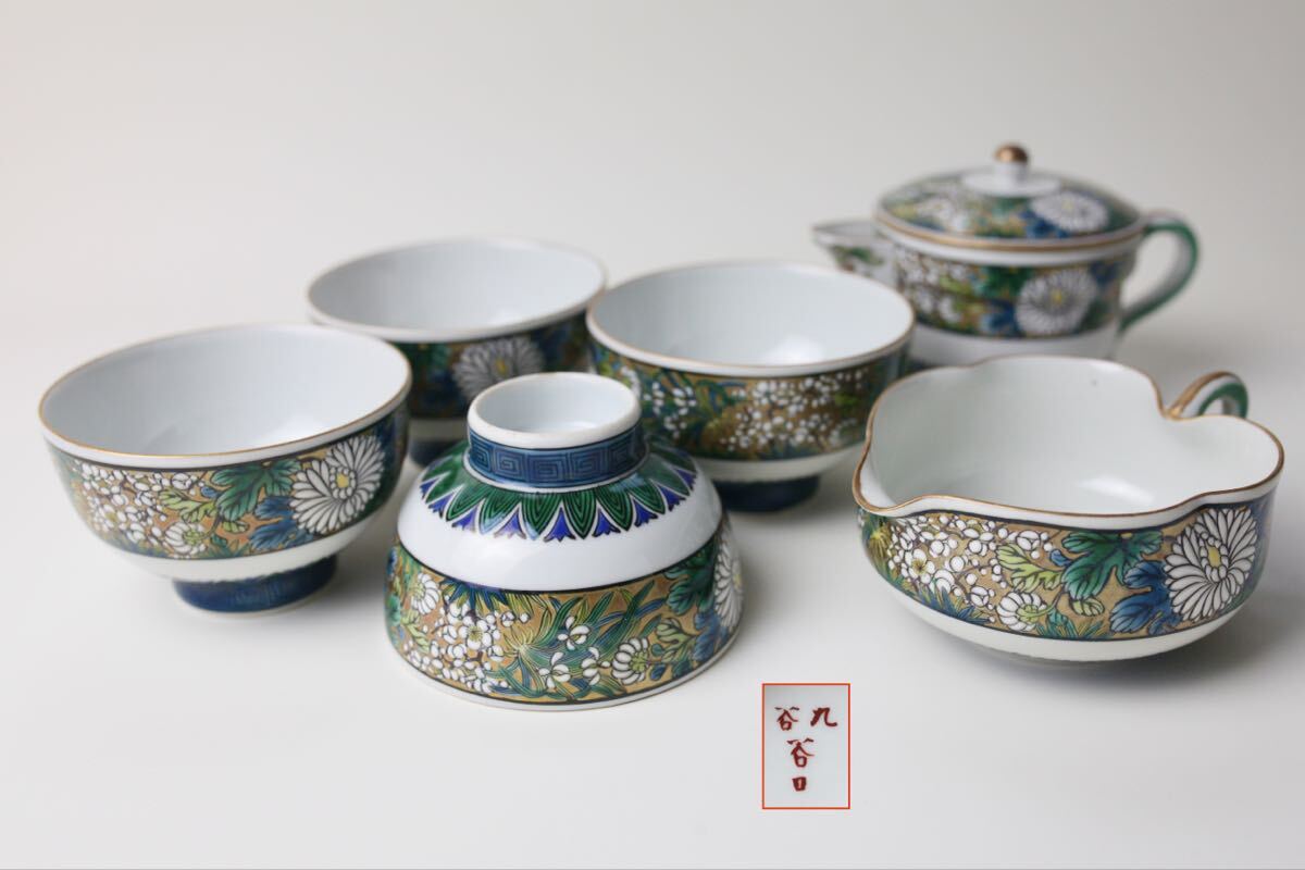 - 九谷焼 九谷谷口 急須 煎茶道具 煎茶器揃 湯冷まし 金彩 煎茶碗 湯冷 茶器 茶器セット