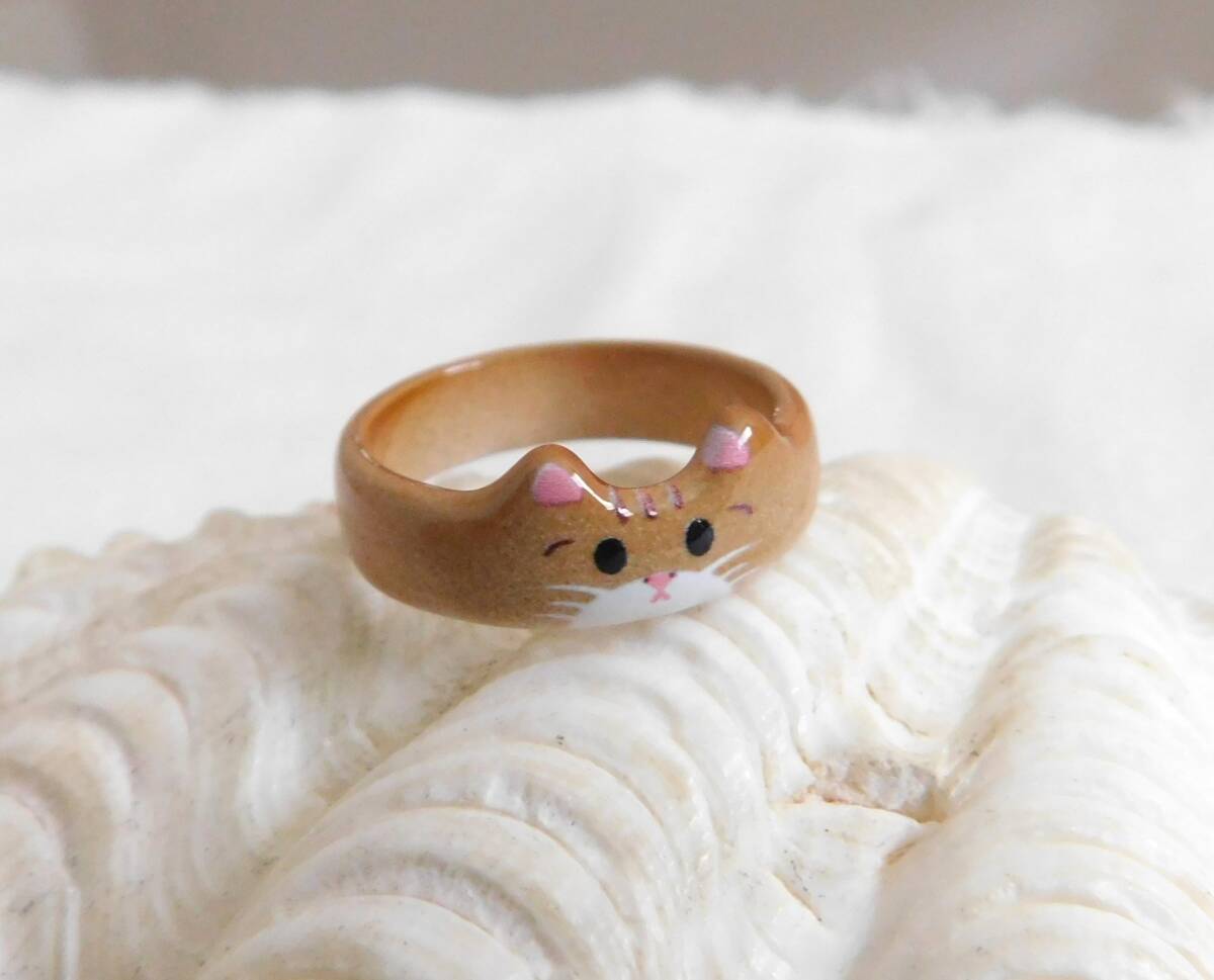 - 【新品】ミルクティー色のネコの指輪 ネコのリング かわいい指輪