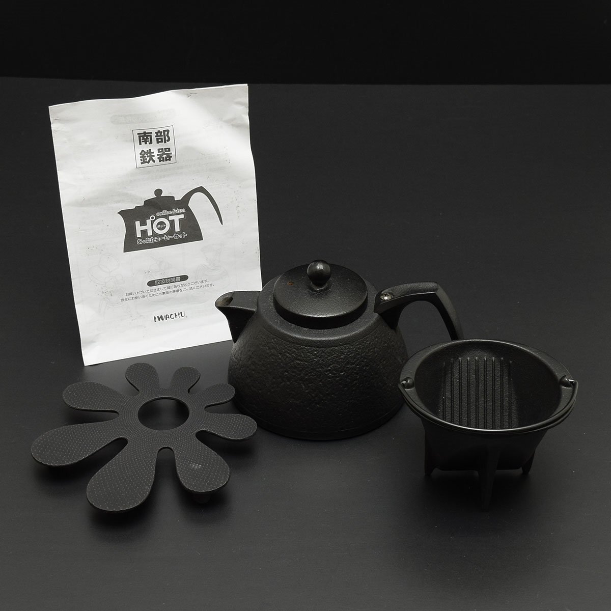 - ◎552526 岩鋳 Iwachu コーヒーポットセット ブラック 0.75L IH対応 瓶敷付き(おまけ) 南部鉄器 日本製 ガス火対応 鋳物 急須鉄瓶