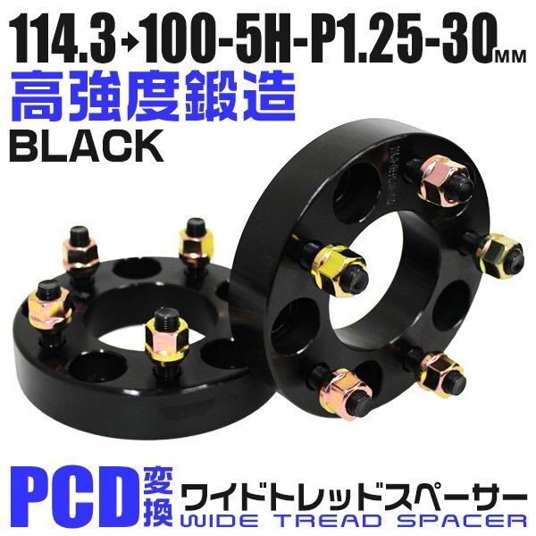 > PCD変換ワイドトレッドスペーサー 30mm PCD114.3→100-5H-M12×P1.25 5穴 ホイール ナット付 ワイドスペーサー ワイトレ 黒 ブラック 2枚