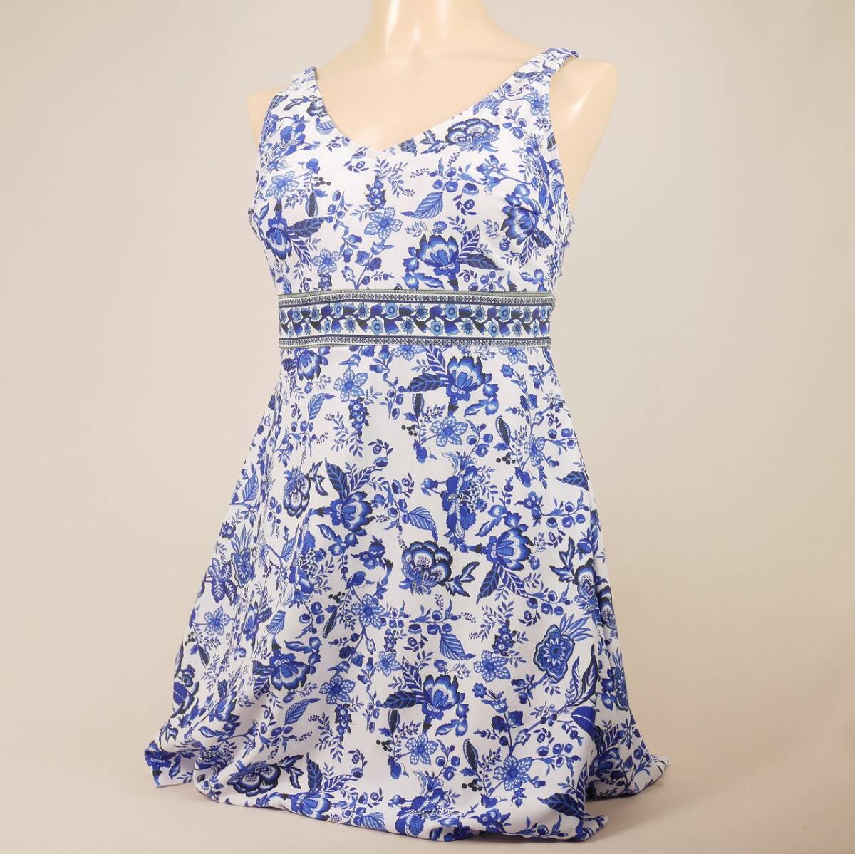 - 7971 美品 レディース水着 モダン花柄プリント ワンピース水着 Sサイズ ブルー系 匿名配送