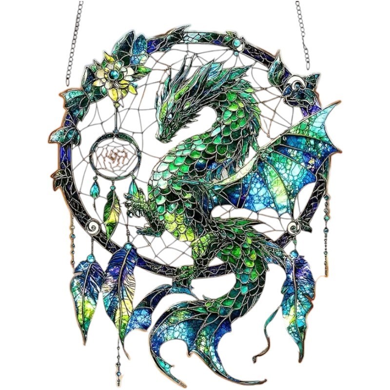 - 【水龍・ウォータードラゴン・グリーンドラゴン】アクリルプレート 飾り サンキャッチャー チェーン付き オブジェ お洒落 壁や窓辺の飾りに